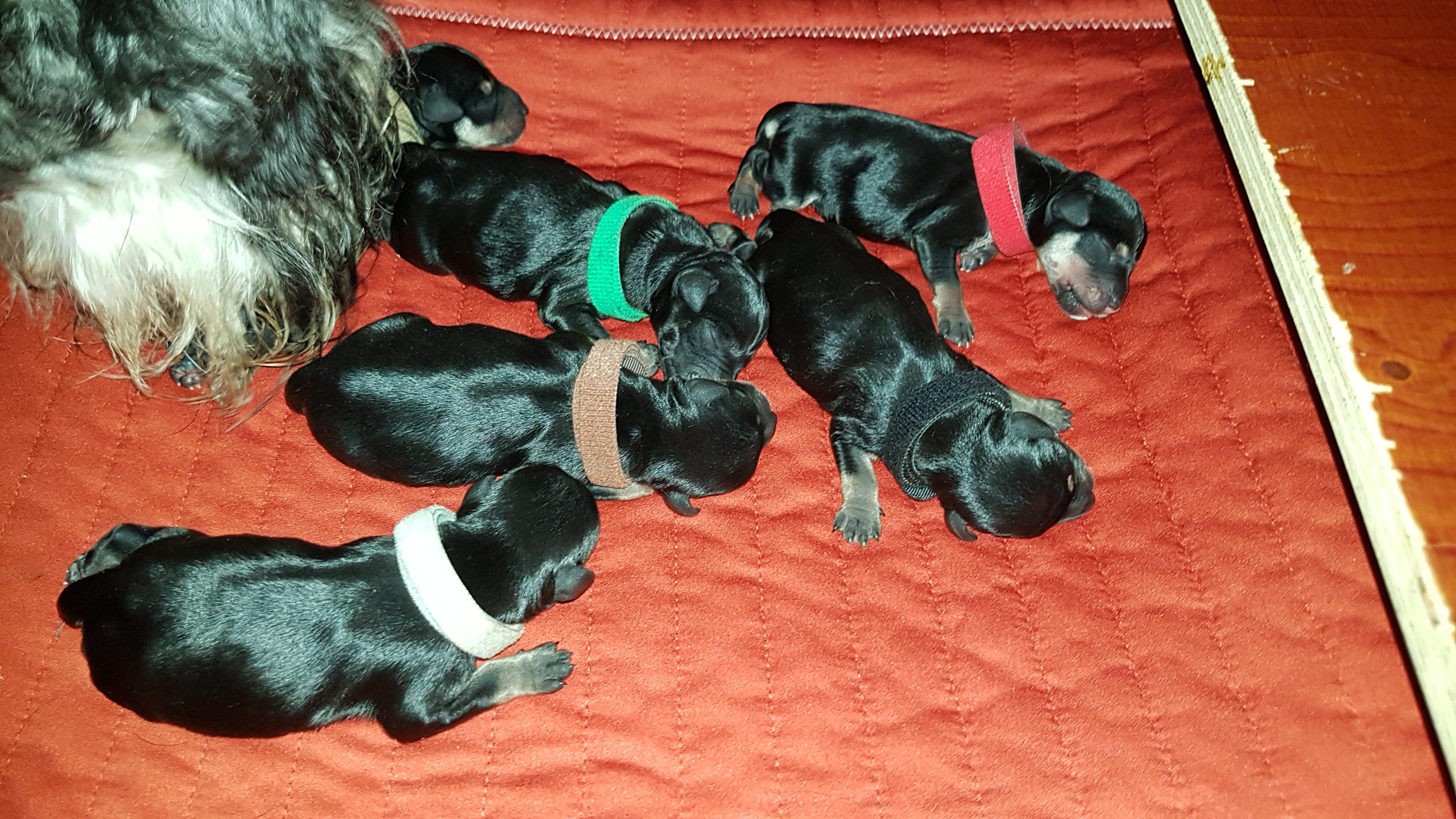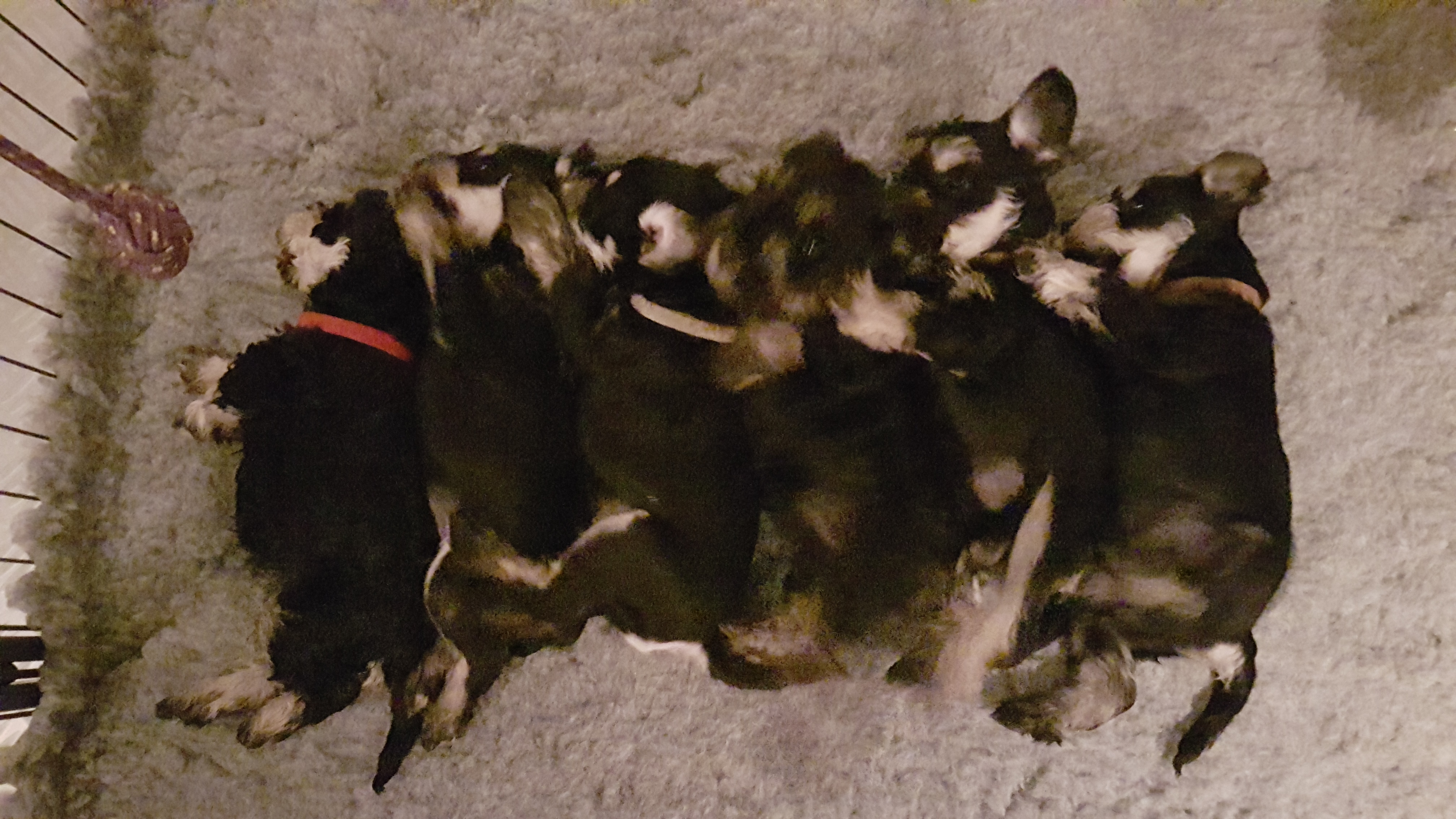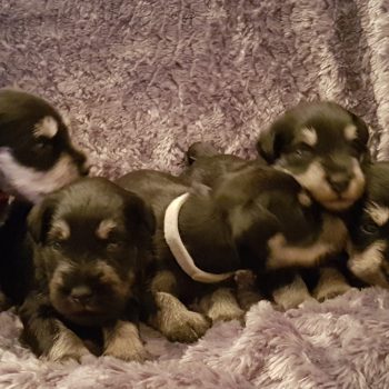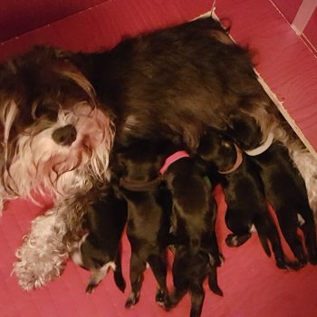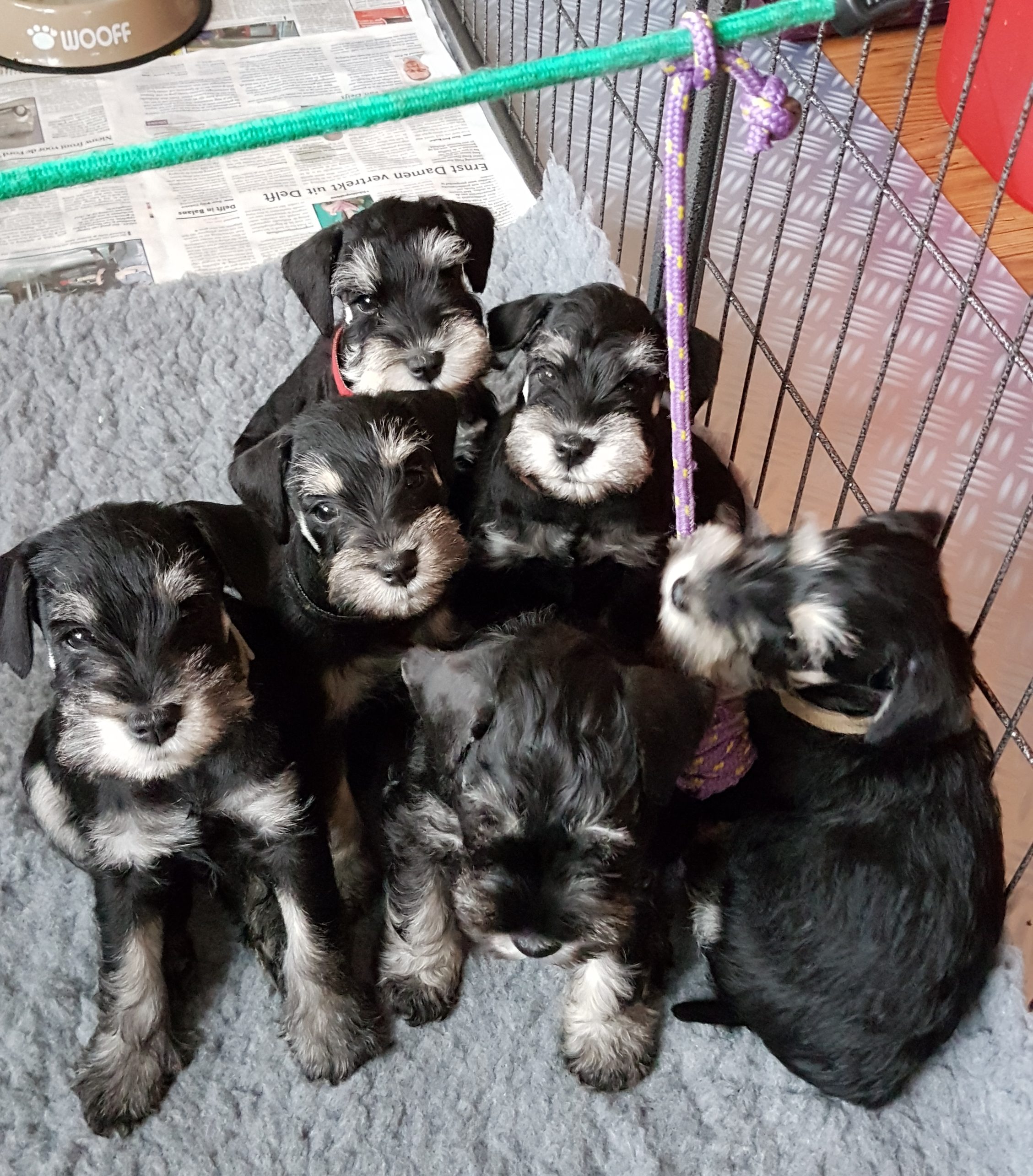 Het B-nest ‘Van Aqualand’ dwergschnauzers zwart/zilver is geboren op 10 oktober 2017.