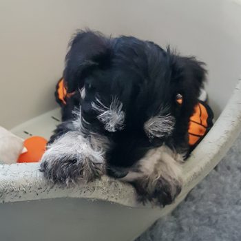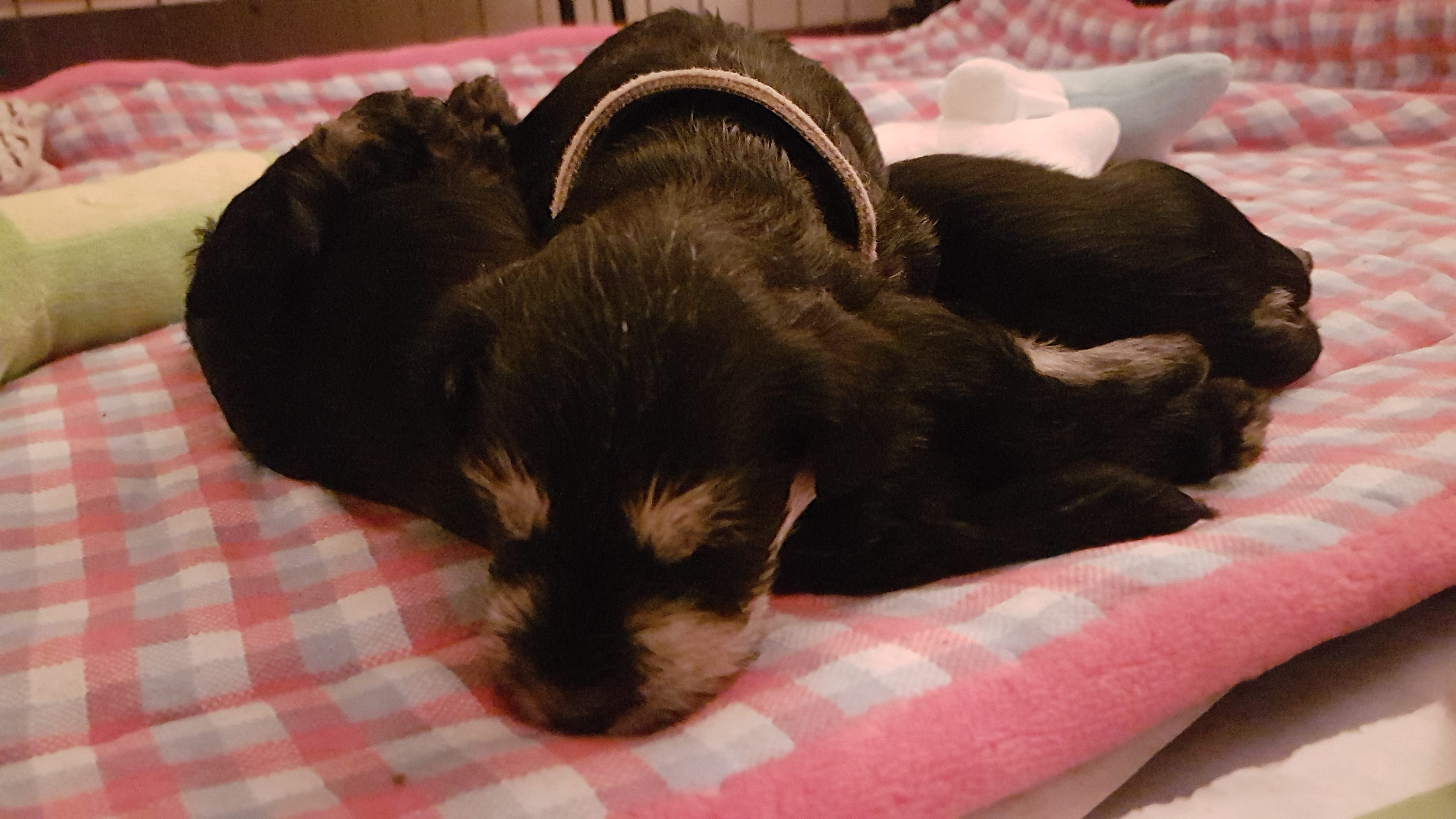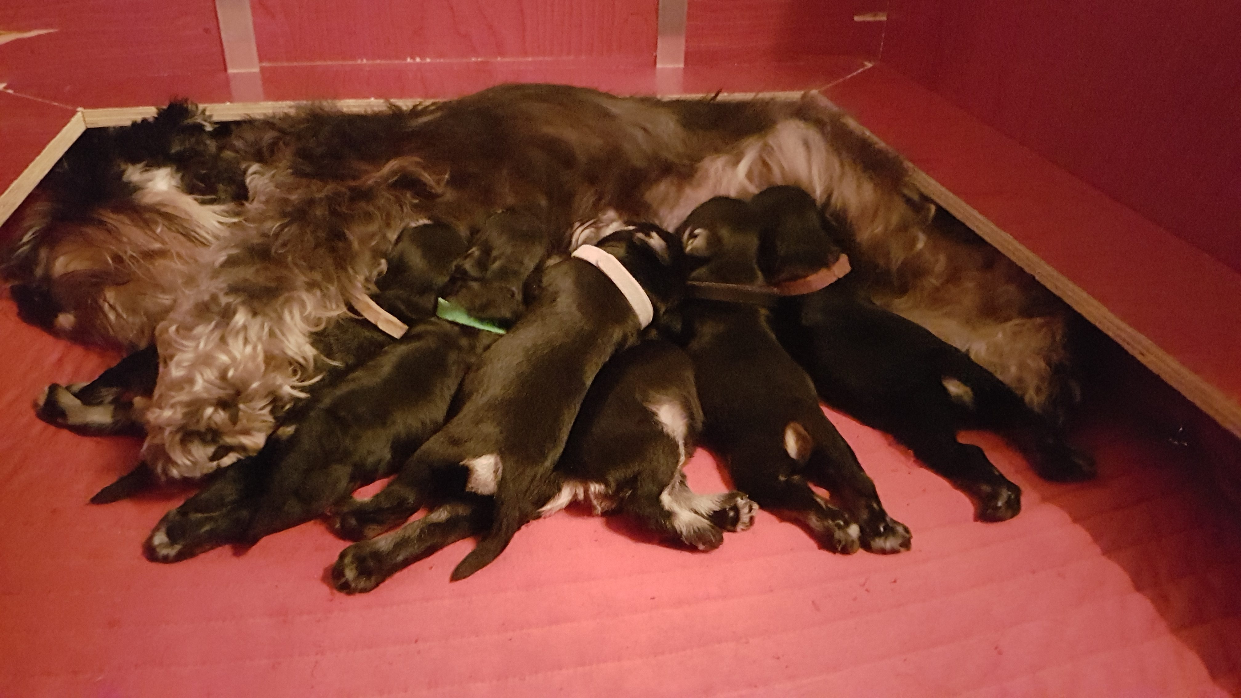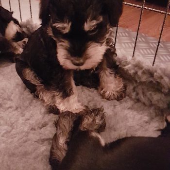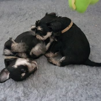 Het B-nest ‘Van Aqualand’ dwergschnauzers zwart/zilver is geboren op 10 oktober 2017.