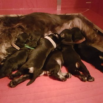 Op 10 oktober is Sushi tussen 13:40 en 18:00 uur bevallen van 4 reutjes en 2 teefjes. De geboorte ging voorspoedig en de pups variëren in geboortegewicht tussen de 110 en 150 gram. Binnen een week zijn de pups verdubbeld en met 12 dagen verdrievoudigd in gewicht. Mamma Sushi doet het, net als met haar 1e nestje, super goed en heeft hele voedingsrijke melk.