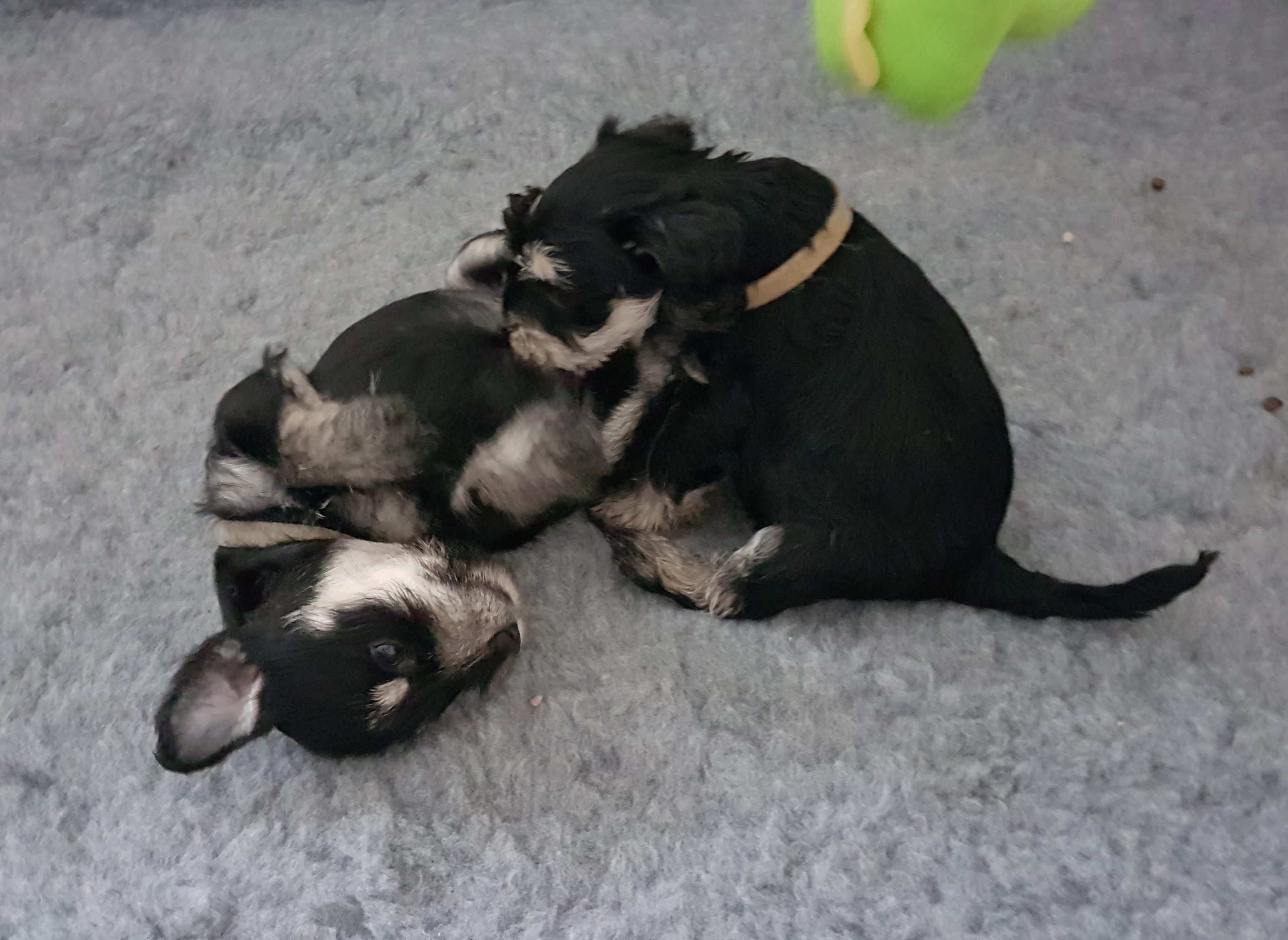 Elke week die voorbij ging werden ze steeds speelser, ondeugender en meer en meer echte mini dwergschnauzers.